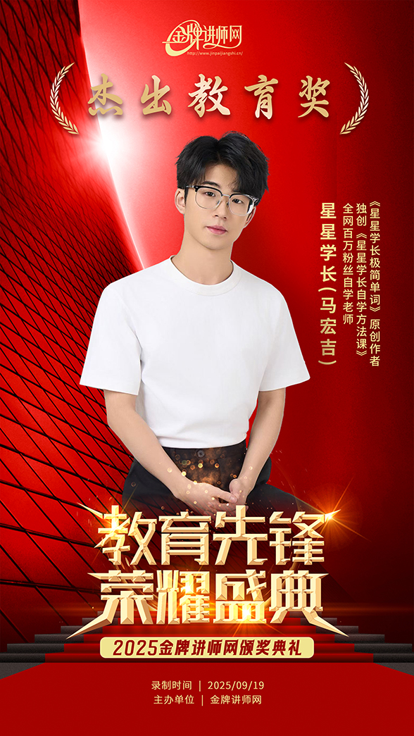 为深入响应国家教育强国建设战略,积极搭建优质教育资源交流平台,着力树立教育培训与知识付费领域行业标杆,进一步激发从业者的责任感与使命感,助力教育行业规范化高质量发展——由金牌讲师网主办、香港文化发展研究会支持的“匠心筑梦·育见未来——教育先锋荣耀盛典”,经公开、公正的评选流程,最终遴选出以下13位在行业深耕、领域突破、实践创新等方面做出突出贡献的优秀从业者,凭借过硬的专业素养与显著的行业价值,成功脱颖而出。